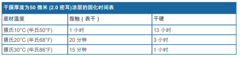 -敬請參閱補充參數(shù)表 - 涂層固化時間表。