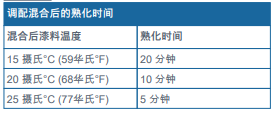 ?涂裝前最好將基料與固化劑各組份或調(diào)配混合后漆料的溫度調(diào)控到攝氏15°C (華氏59°F)以上, 不然則可能需要額外添加稀釋劑將漆料的粘度調(diào)整到適宜施工的粘稠狀態(tài)。