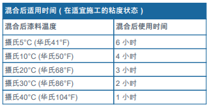 ?在涂裝施工和涂層固化過程中應確保底材溫度高于攝氏 5°C (華氏41°F)。