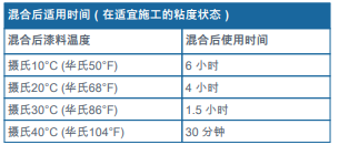 ?在涂裝施工和涂層固化過(guò)程中應(yīng)確保底材溫度高于攝氏 10°C (華氏50°F)。
