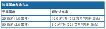 -敬請(qǐng)參閱補(bǔ)充數(shù)據(jù)表 - 理論涂布率與干膜厚度對(duì)照關(guān)系表。